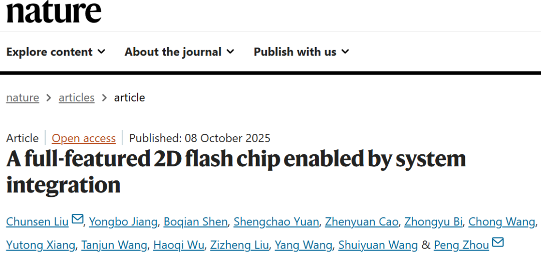 2.Liu, C., Jiang, Y., Shen, B. et al. A full-featured 2D flash chip enabled by system integration. Nature (2025).https://doi.org/10.1038/s41586-025-09621-8